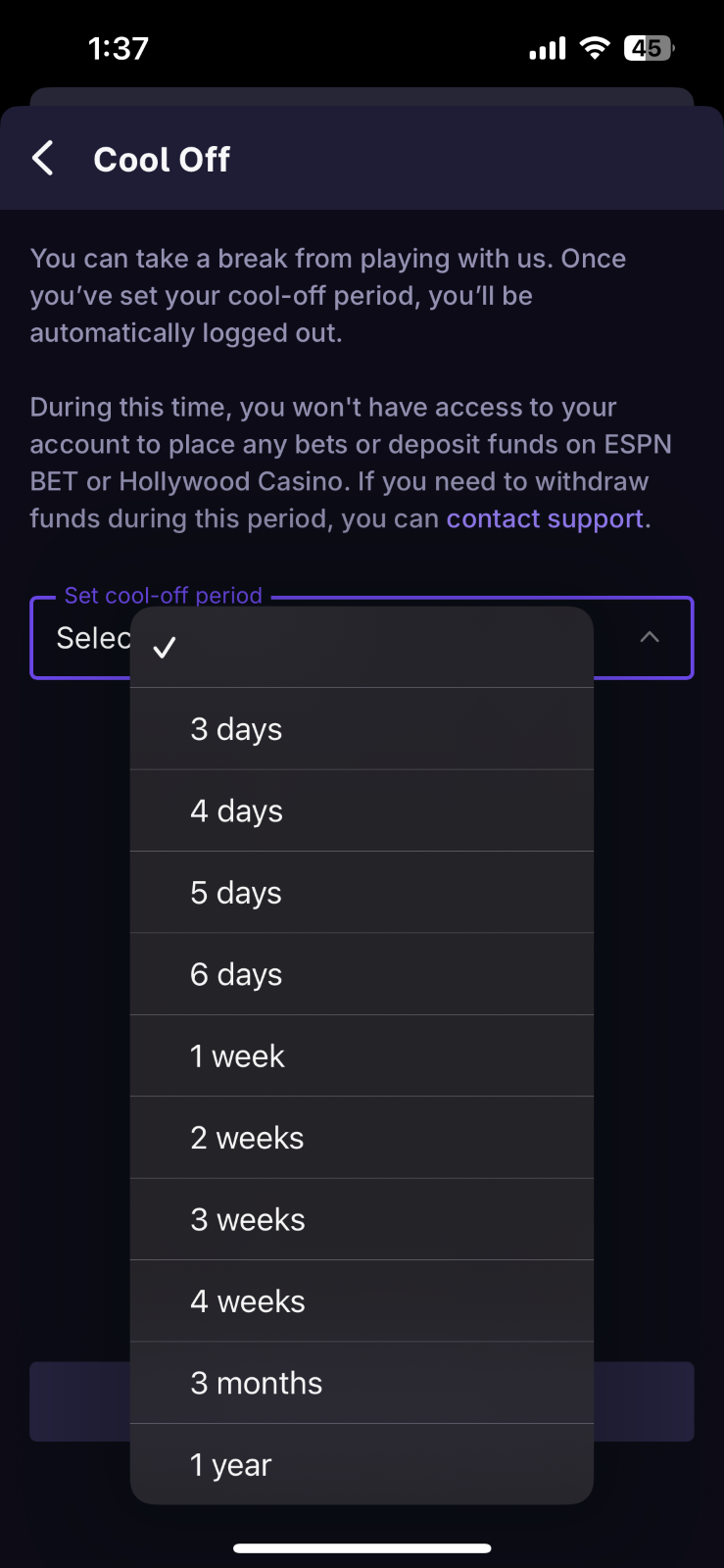 If you need to withdraw funds during this time you can contact support@thescore.bet