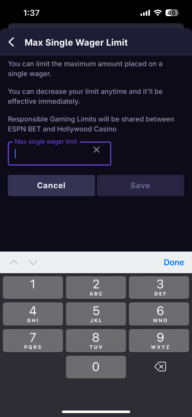 theScore Bet and Hollywood Casino want you to play responsibly. We've built some tools right into our app to help you set your own limits and play smart.
