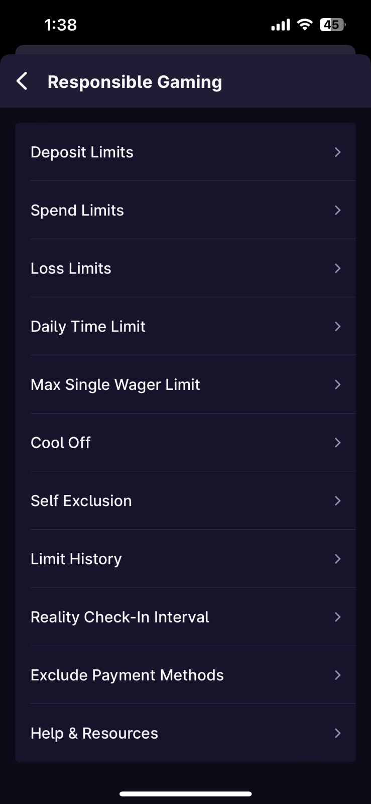 Self Exclusion - Responsible gaming is also knowing when to stop. You can take a break for extended period of time, varying based on location, from playing if you feel that setting limits isn't enough to control the time or money you are spending.